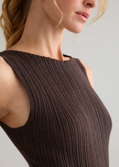 Cotton Cashmere Ribbed Sleeveless Midi Dress