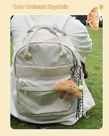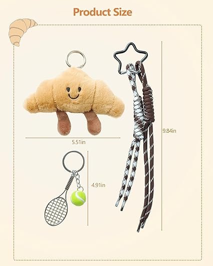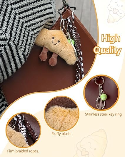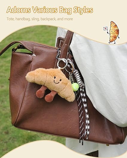- Adorable Smiling Plush Croissant: This bag charm features a super cute plush croissant keychain with a sweet smiling face, bringing instant cheer and a touch of bakery charm to your bags.