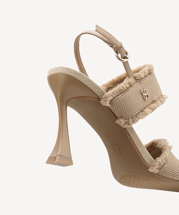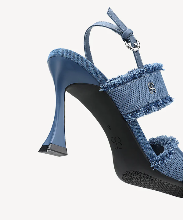 - With an 8.5 cm (3.35 inches) heel, they provide an effortlessly graceful fit for all-day wear. The soft, plush denim-inspired trim gives them a distinctive casual-chic vibe.