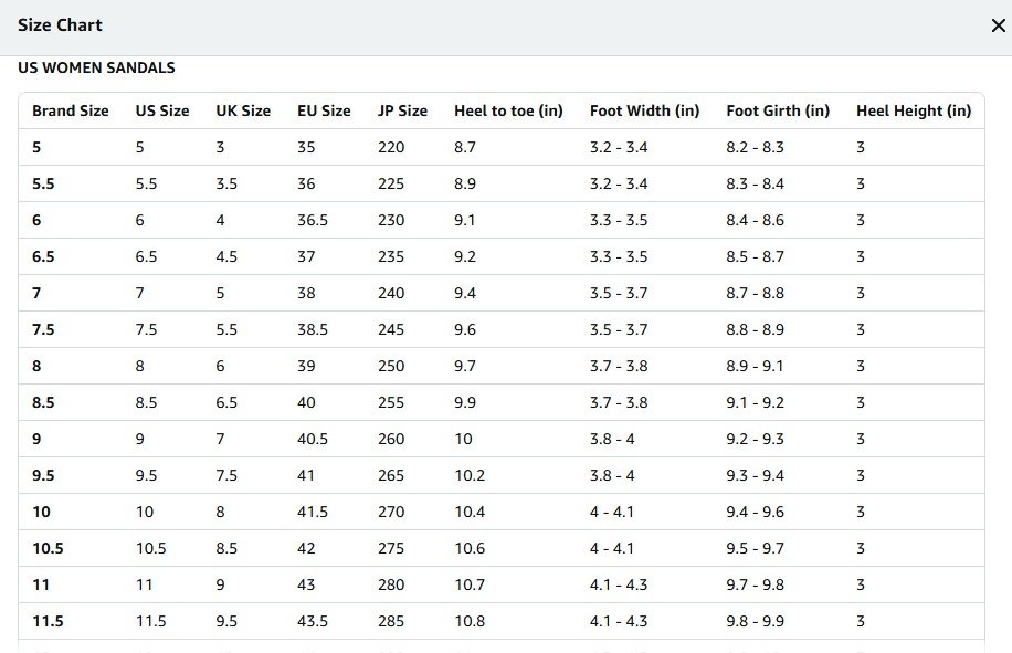 | Size 1 | 5, 6, 6.5, 7, 7.5, 8, 8.5, 9, 9.5, 10, 11 |