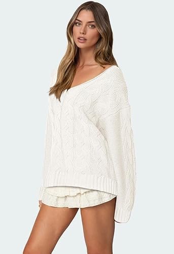 - Design Highlights: Oversized sweater designed in a cable knit front with a slouchy drop shoulders and ribbed trim finishing, perfect for cozying up and looking chic all season long.