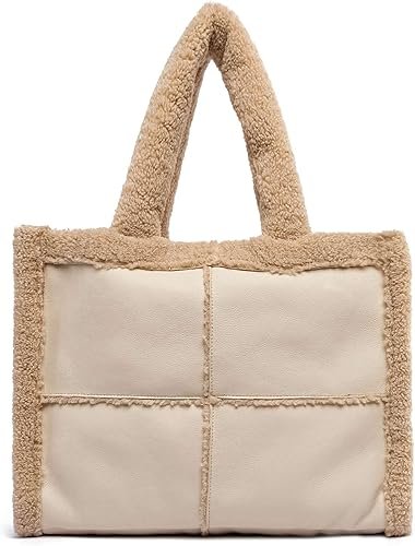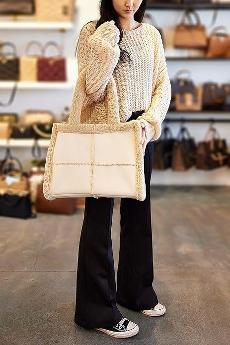 Like Dreams Large Sherpa Tote Bag, Inner Pocket Vegan Leather