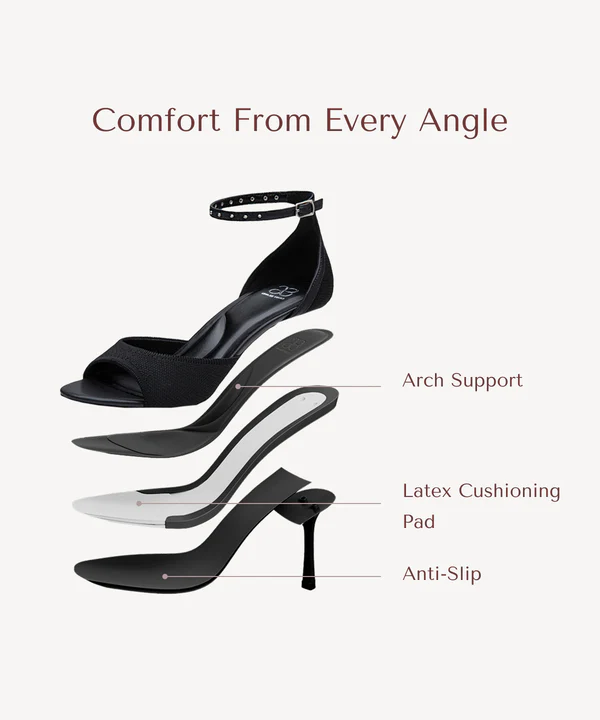 - Elevate your style with the Minimalist Round Toe Ankle Strap Heeled Sandals The sleek stiletto heel (8.5cm/3.35 inches) provides a graceful lift.