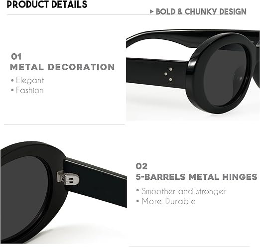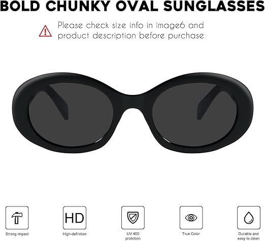 - BOLD CHUNKY OVAL STYLE – Stand out from the crowd with these bold, chunky frame sunglasses.
