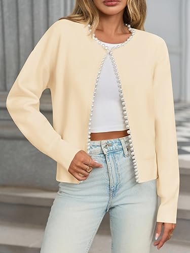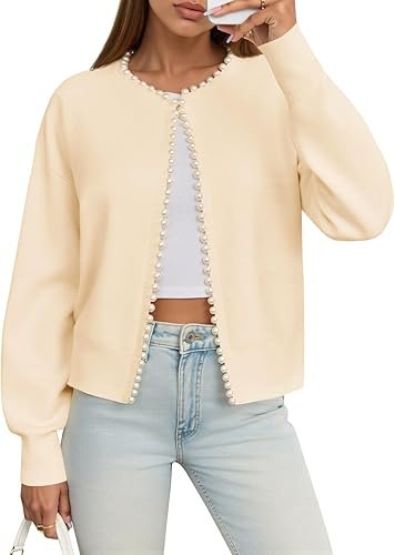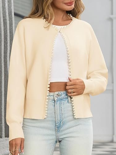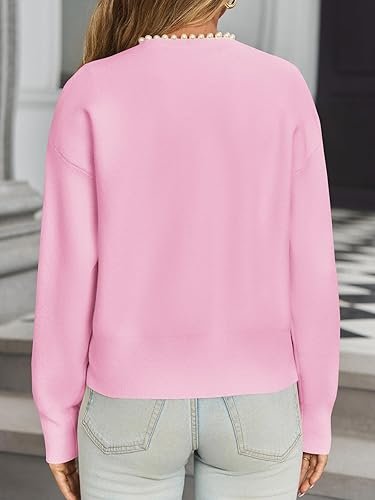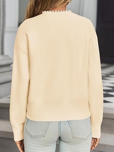 Pearl Long Sleeve Knit Tops Crewneck Dressy Casual Sweater Jacket.