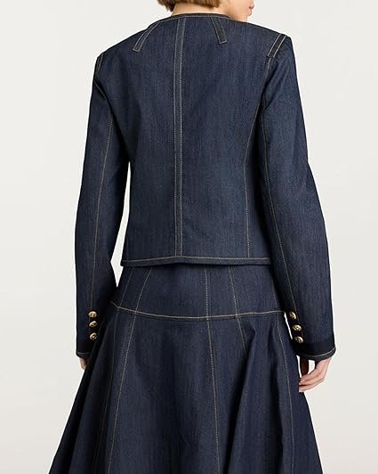 Women’s Long Sleeve Cropped Collarless Jean Jacket