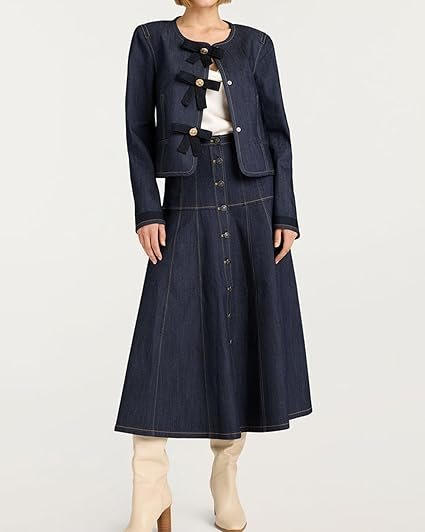 Button Down Casul Slim Fit Y2k Bow Short Denim Jackets.