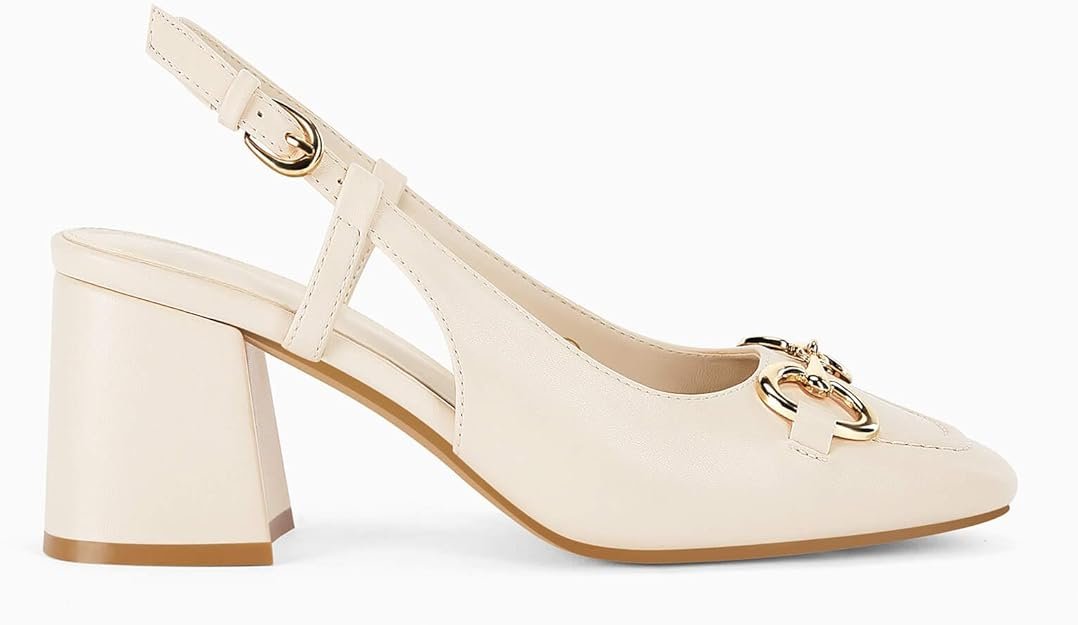 Womens Slingback Block Heels Closed Square Toe