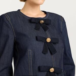 Button Down Casul Slim Fit Y2k Bow Short Denim Jackets.
